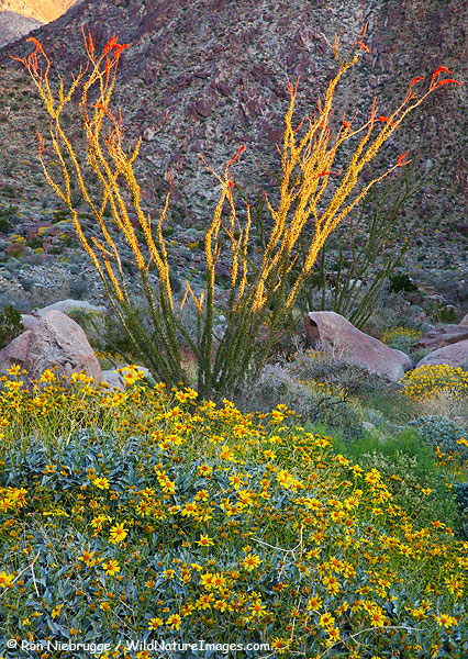 An Ocotillo at sunrise in Borrego Palm Canyon, Anza-Borrego Desert State Park, California.