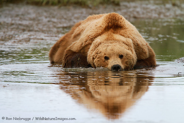 A brown bear cools off by laying in the water this past June, Lake Clark National Park, Alaska.