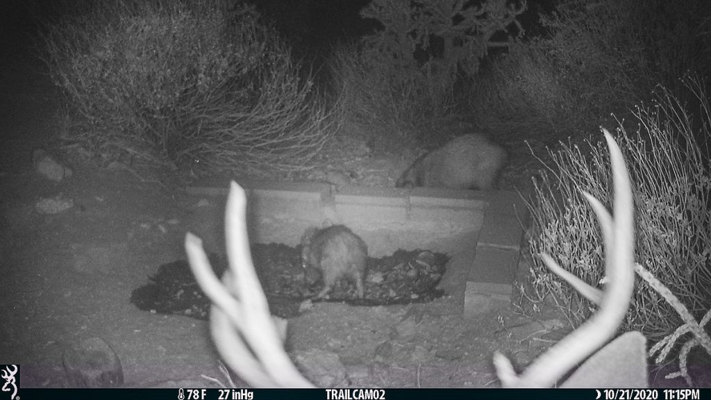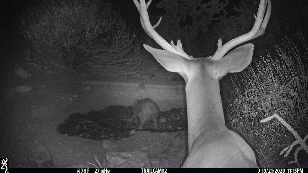 We are now on our property and wow, there has been so much mammal and bird activity! So busy right from the start, it is exciting! Check out these guys from last night – funny how the big buck waited for the javelina to finish drinking before moving in.