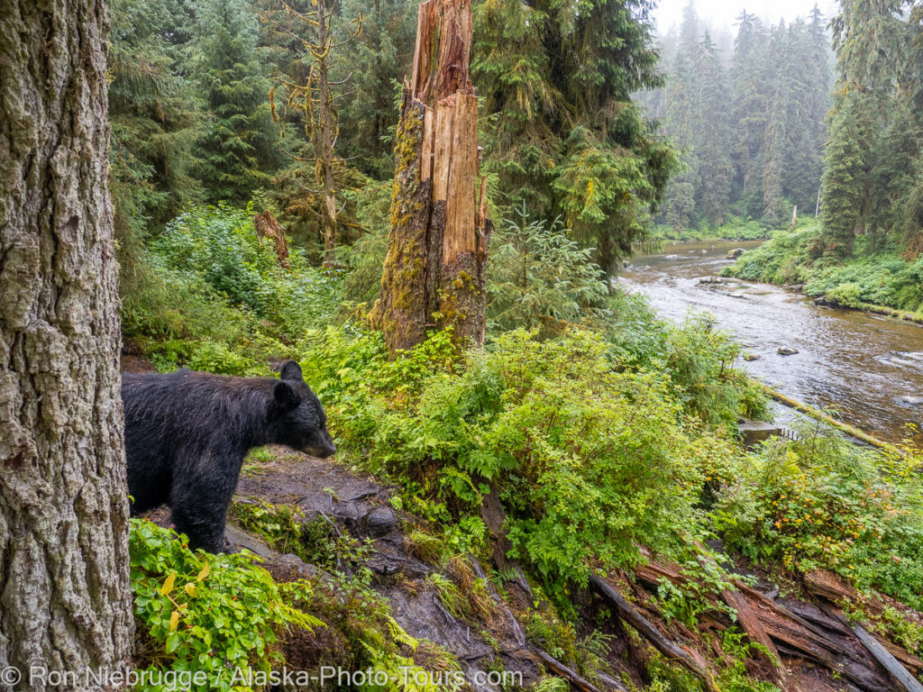 Black Bear View Ron Niebrugge August 5, 2021Alaska, Photos, Travel Leave a Comment Black Bear. A black bear looking checking out a salmon stream yesterday. This was an image I was really hoping to capture when I returned to this great bear viewing location in Alaska.