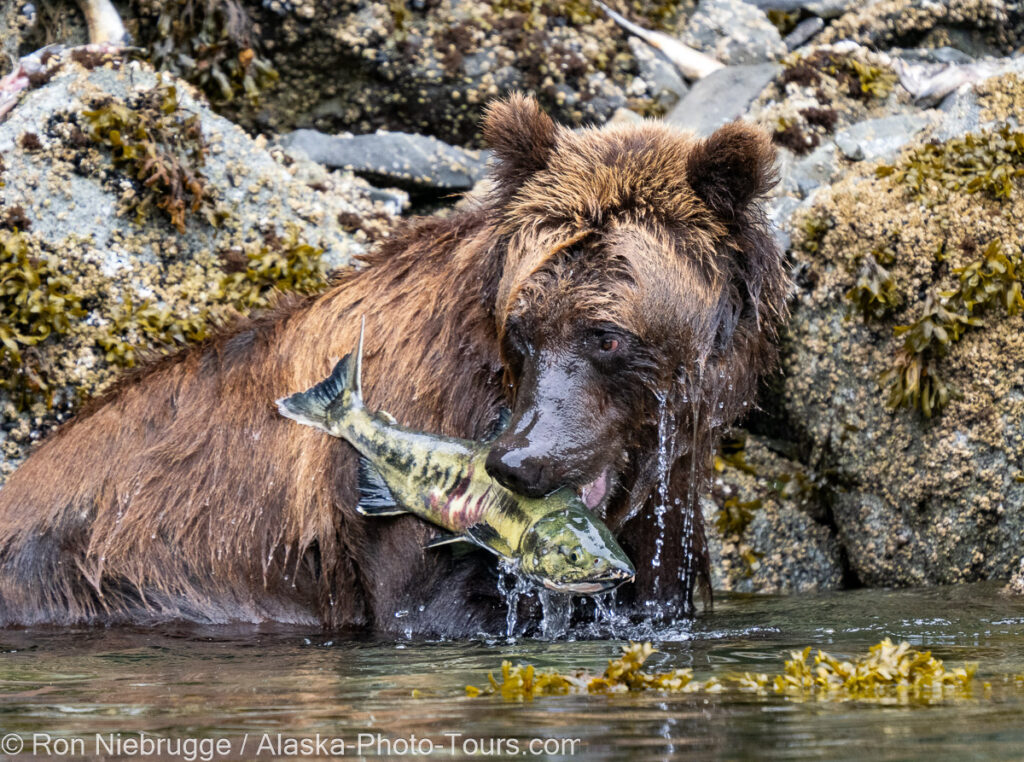 A brown bear pulling a chum salmon from the ocean earlier this month. I scheduled this in advance as I am on the Katmai Coast this week.