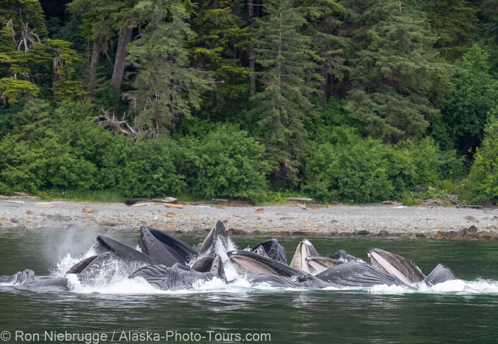 This is a large group of about 14 humpback whale cooperative feeding by creating large “nets” of bubbles which helps concentrate the fish – then the group rises up from below the fish with their mouths wide open! Really amazing to watch. This was from last week’s bear and whale trip. I begin week two today.