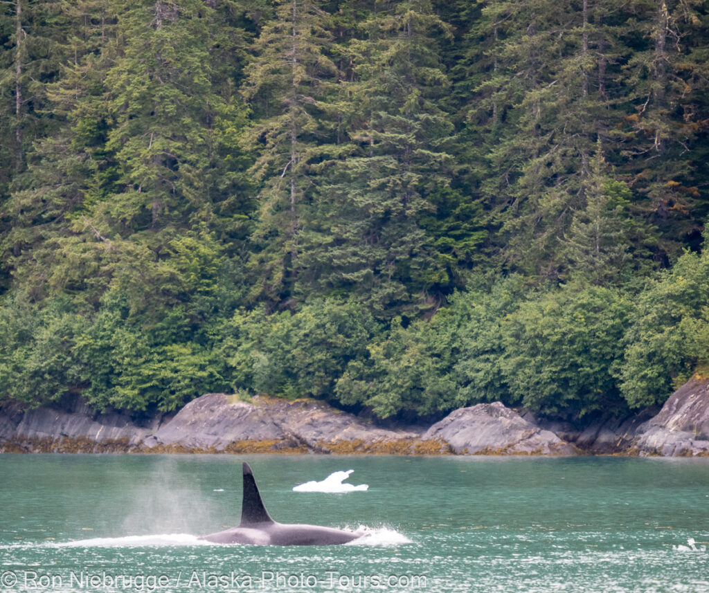 An orca swimming up Endicott Arm, Tongass National Forest, Alaska.
