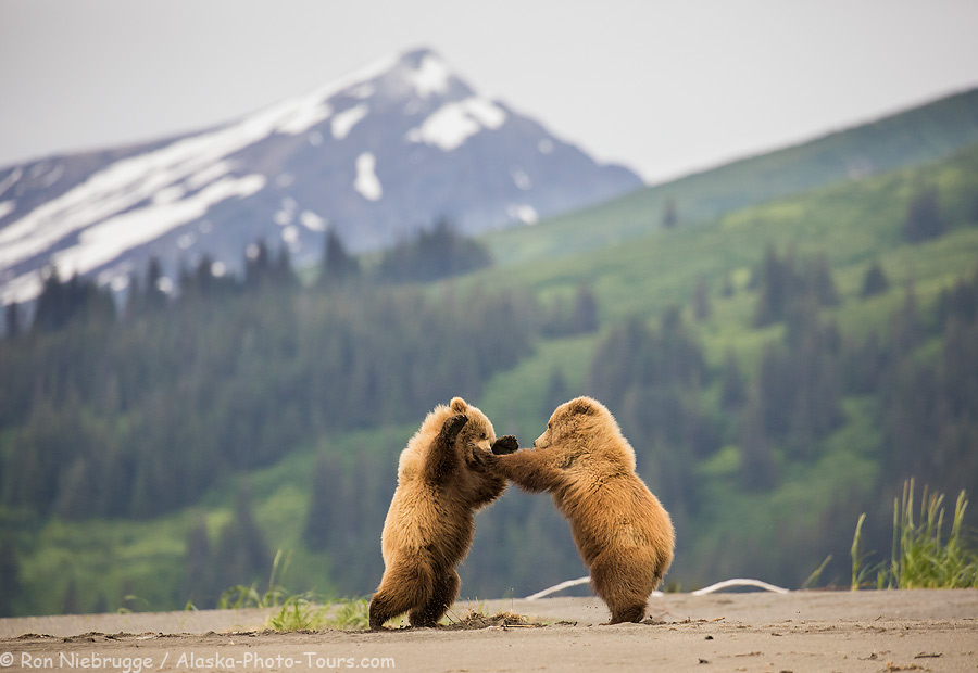 Alaska Bears, Bears, Bears and Puffin Photo Tour. If it is bears that you want, then this is the trip for you! I have been visiting this wonderful lodge on the coast of Lake Clark National Park for over a decade, and offer two trips every June. We will see lots of bears, and will even have bears walking between the cabins and around the grounds of the lodge. We are often watching bears as we dine on the wonderful food! This is the best time of year – we usually see sows with cubs, playing, nursing digging for clams, eating grasses the works! Since it is mating season, this is also the best time of year to see the huge boars. It is exciting to see the males posturing and trying to intimidate each other. Throw in wildflowers and lush green grass, and you have the ideal environment. We will take at least one boat ride to an island with many sea birds including horned and tufted puffin.