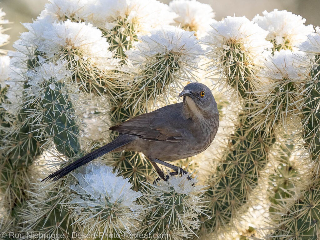 Curve-billed Thrasher Ron Niebrugge February 18, 2023Photos 3 Comments Curve-billed thrasher In the snow, Tortolita Mountains, Marana, near Tucson, Arizona. Curve-billed thrasher during the snow storm earlier this week.
