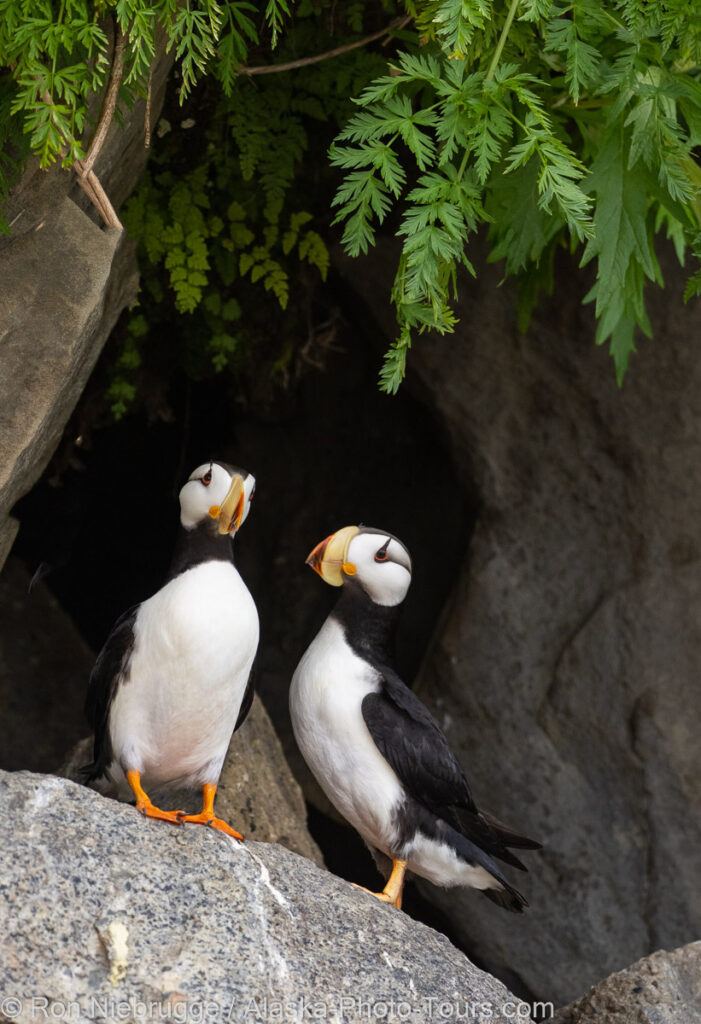 Horned Puffin Ron Niebrugge April 18, 2021Photos Leave a Comment Horned puffin, Lake Clark National Park, Alaska. A couple of horned puffin on the same day as yesterday’s bear family photo – the days in Alaska are full! From last June.