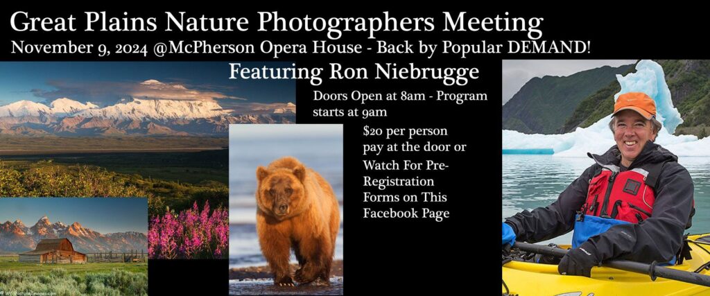 I’m going to be doing a talk on Saturday November 9 for the Great Plains Nature Photographers in McPherson, Kansas! I did a talk there five years ago and had a blast! I’m honored they have asked me to return.
