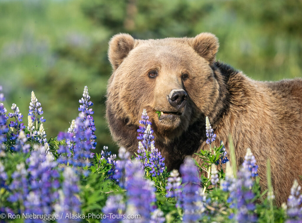 We had a lot of photo opportunities with brown bears in fields of lupine this past June – definitely the most I have every had. It is still a challenging photo, as the bears are in constant motion, and the lupine can be as tall as the bears face. So you are waiting for those brief moments when the bear looks up, and there is a gap in the lupine. Lake Clark National Park, Alaska.
