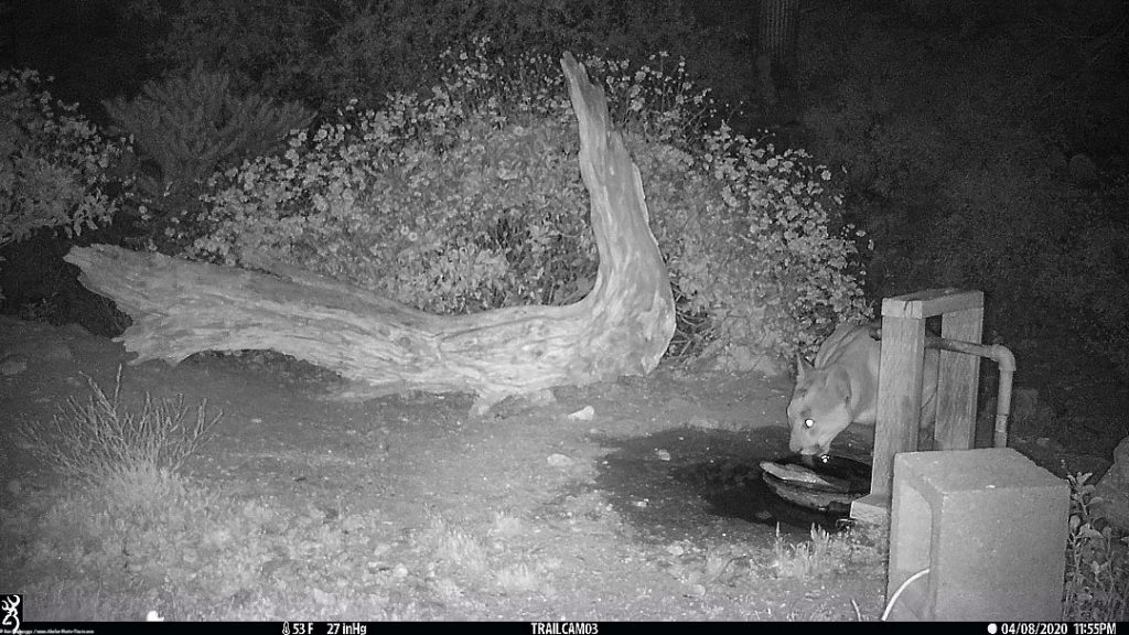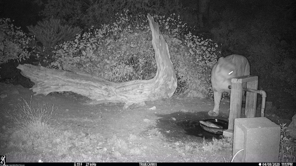 I measured, this mountain lion was 11 feet from our rv last night! 🙂 Not long after I went to bed – I was out there not too long before this looking for owls, makes you wonder if it saw me. Pretty exciting! For reference, the wood javelina guard is nearly 2 feet tall.