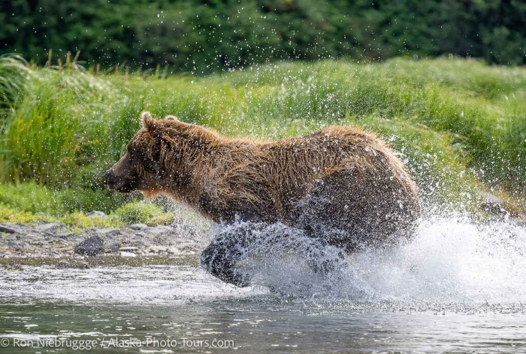 It is amazing how fast brown bear can run through moderately deep water. Last August, Katmai National Park, Alaska.