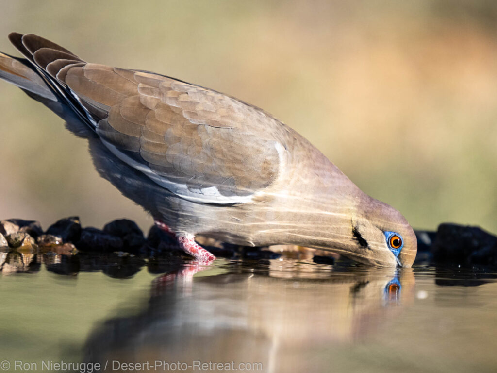 White-winged Dove Ron Niebrugge March 1, 2022Photos Leave a Comment White-winged Dove, Marana, near Tucson, Arizona. A White-winged Dove getting a drink at the Reflection Blind. These guys usually begin showing up a little later into the spring, but this one is definitely an early bird!
